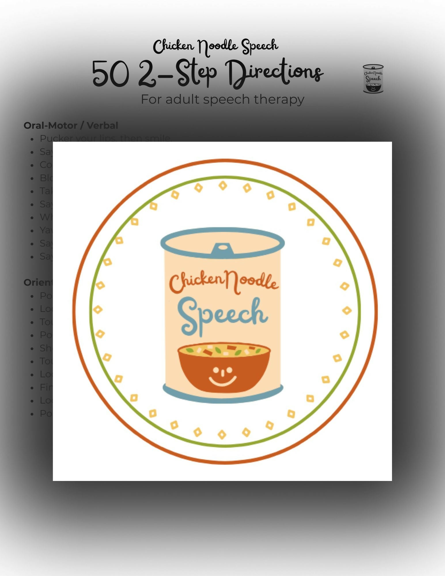 Looking for functional, no-prep 2-step directions for your adult speech therapy sessions? This printable and digital-friendly resource includes 50 2-step directions designed to support patients with receptive aphasia, cognitive-communication deficits, and language comprehension challenges following stroke, TBI, or other neurological conditions.